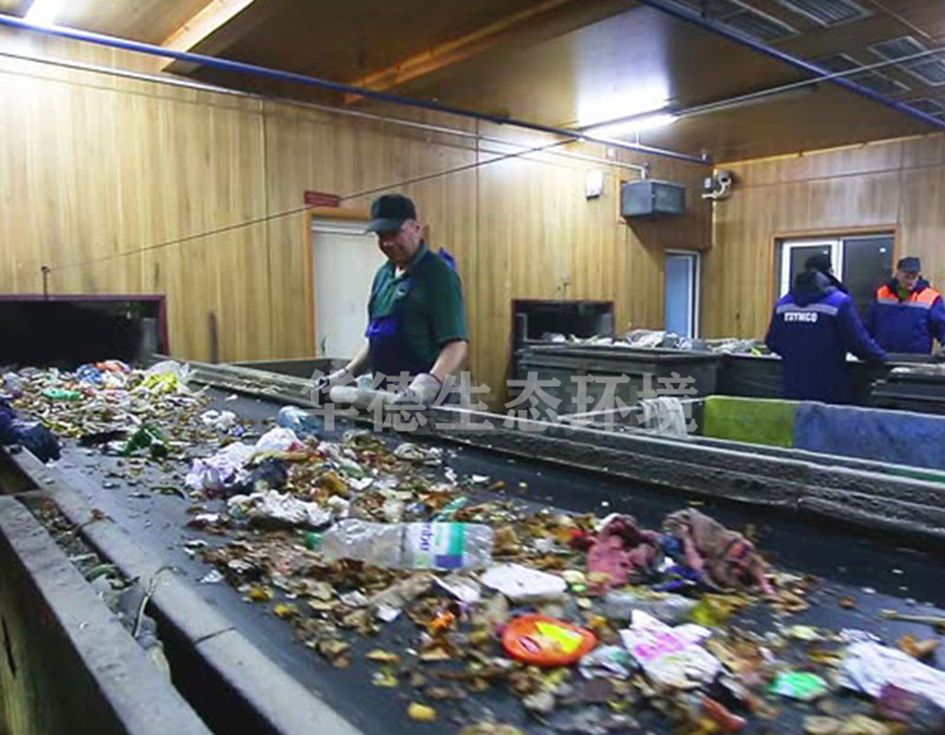 垃圾箱内的垃圾按纸制品、废木料、塑料制品、金属制品等种类划分,并根据垃圾破碎机、金属分选设备、有机物精筛分等专业设备进行分类处理、分类存放。